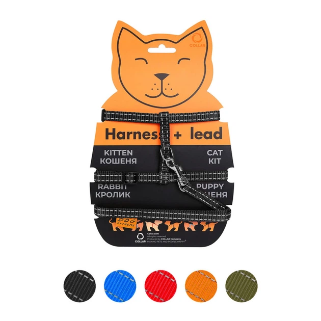 Шлея "Dog Extreme" з нейлону для котів з повідцем (ширина 10мм, А:20-30см, В:25-40см, довжина 110см) чорний