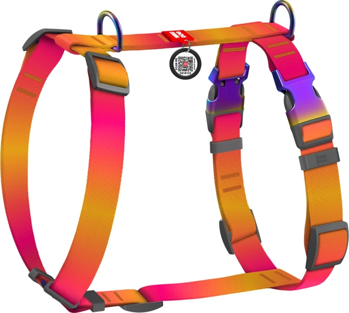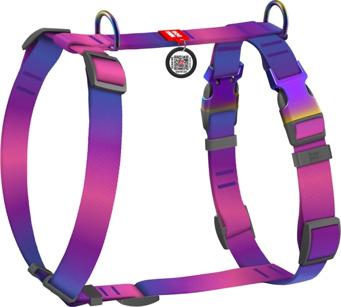 Шлея для собак анатомічна H-подібна WAUDOG Nylon Recycled з QR-паспортом, градієнт, S, Ш 15 мм, A 30-40, B 37-47 Фіолетова (