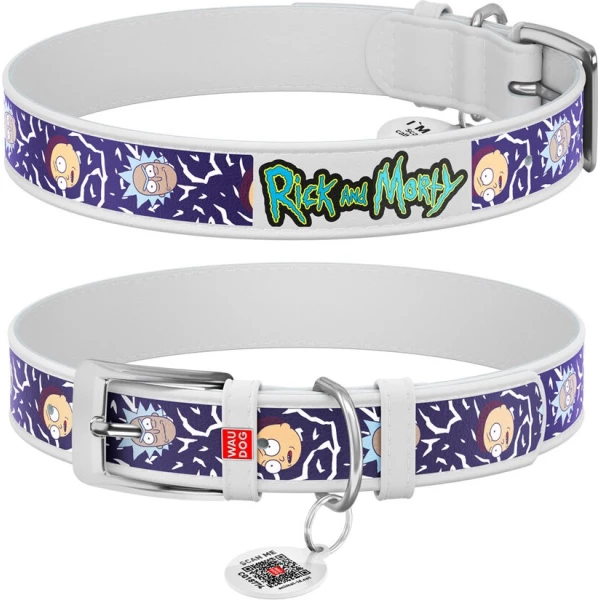 Нашийник для собак шкіряний WAUDOG Design з QR паспортом, малюнок "Рік та Морті 2", L, Ш 25 мм, Д 38-49 см білий Акція!