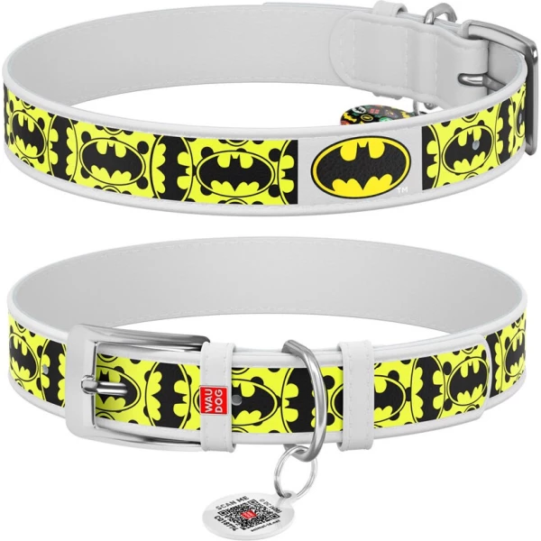 Нашийник для собак шкіряний WAUDOG Design з QR паспортом, малюнок "Бетмен4", L, Ш 25 мм, Дов 38-49 см, білий Акція!