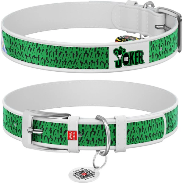 Нашийник для собак шкіряний WAUDOG Design з QR паспортом, малюнок "Джокер", L, Ш 25 мм, Дов 38-49 см, білий Акція!