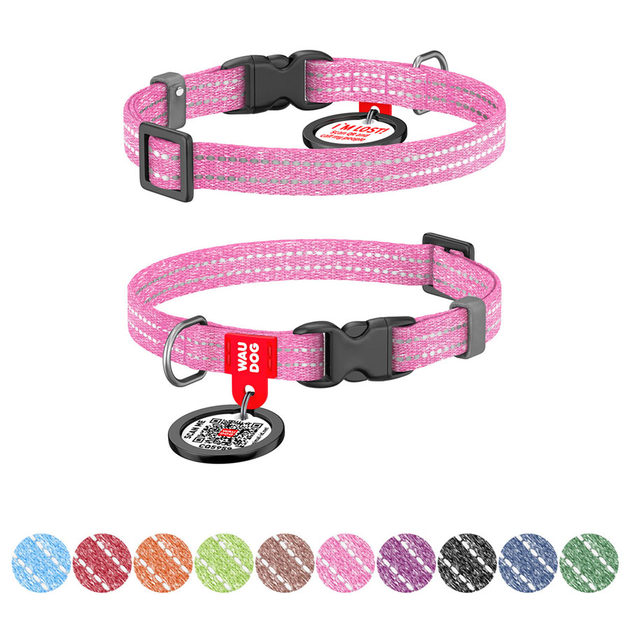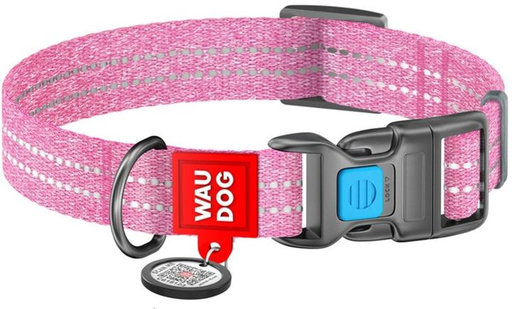 Нашийник для собак світловідбивний Collar Waudog Re-cotton з QR паспортом, пластиковий фастекс (15 мм 23-35 см) Рожевий (482