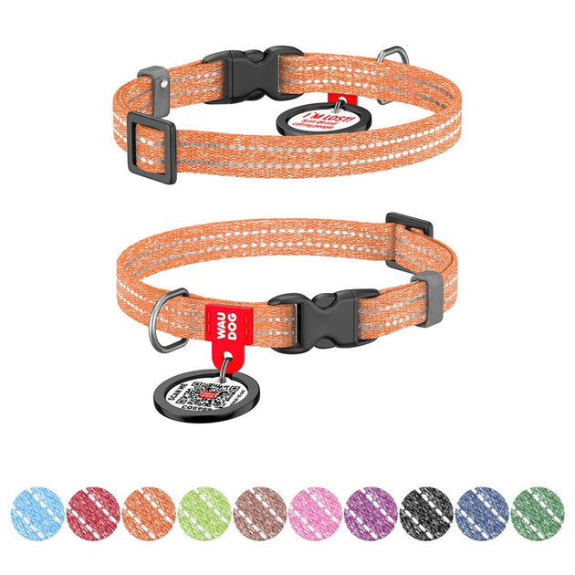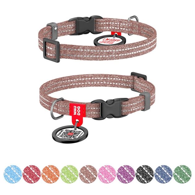 Нашийник для котів і дрібних порід собак із відновленої бавовни WAUDOG Re-cotton з QR паспортом, світловідбивний, пластикови