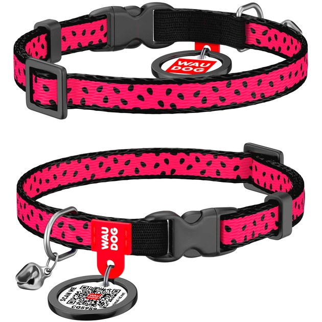 Нашийник для котів нейлоновий WAUDOG Nylon з QR паспортом, малюнок "Інжир", пластиковий фастекс, XS, 20-30 см, 10 мм