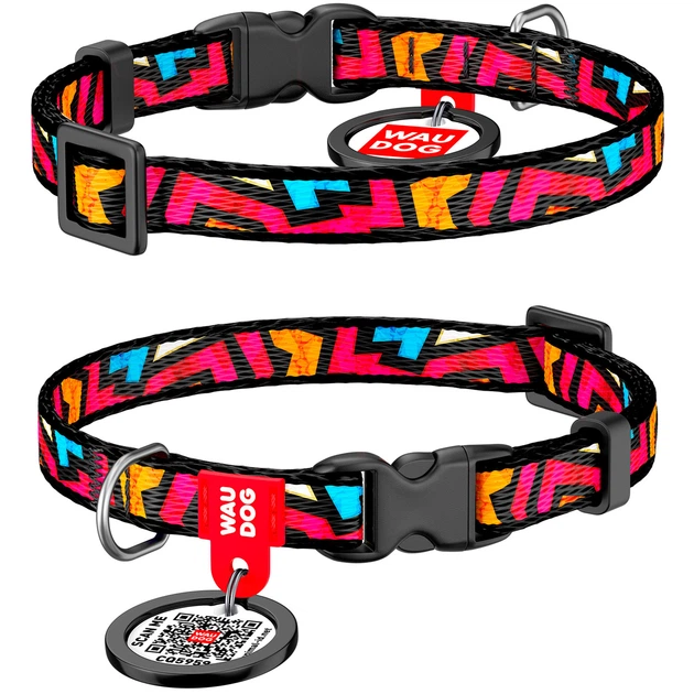 Нейлоновий нашийник WAUDOG Nylon з QR паспортом, з малюнком "Графіті" для дрібних порід собак та котів 20-30 см 10 мм (5232)