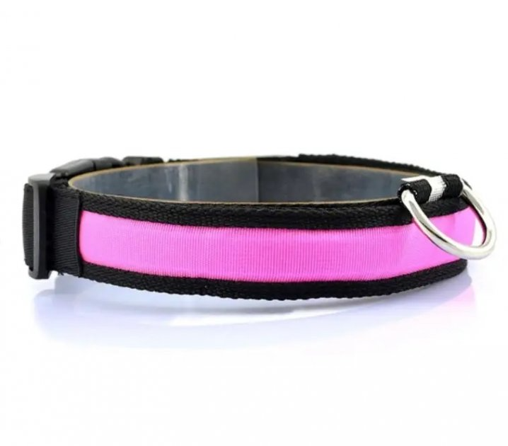 Ошейник ремінець для собак Led світиться колір Розовий розмір XL 45 - 55см (ORM1131)