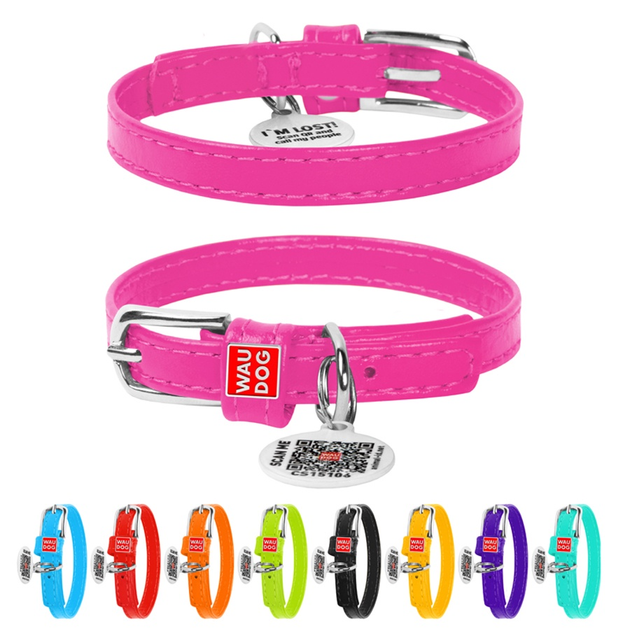 Ошейник для собак шкіряний WAUDOG Glamour з QR паспортом, без прикрас, XXS, Ш 9 мм, Дов 19-25 см рожевий