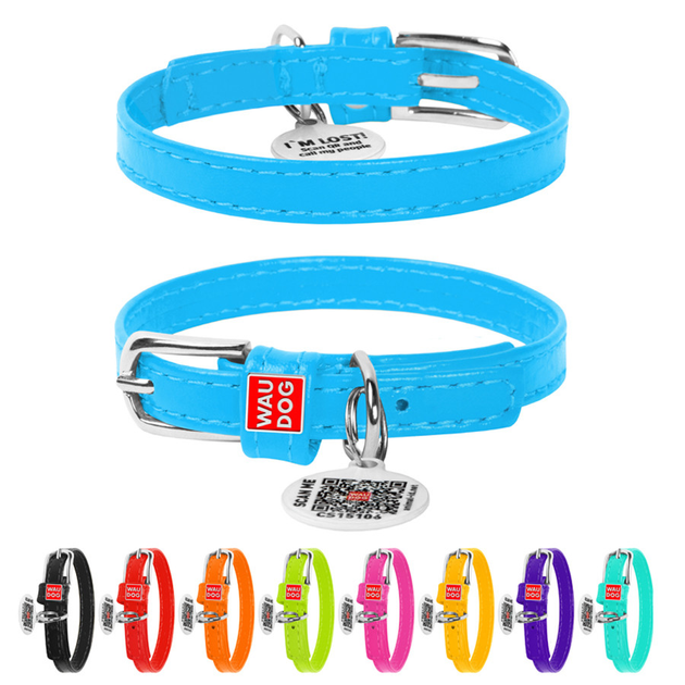 Нашийник для собак шкіряний WAUDOG Glamour з QR паспортом, без прикрас, XXS, Ш 9 мм, Дов 19-25 см блакитний