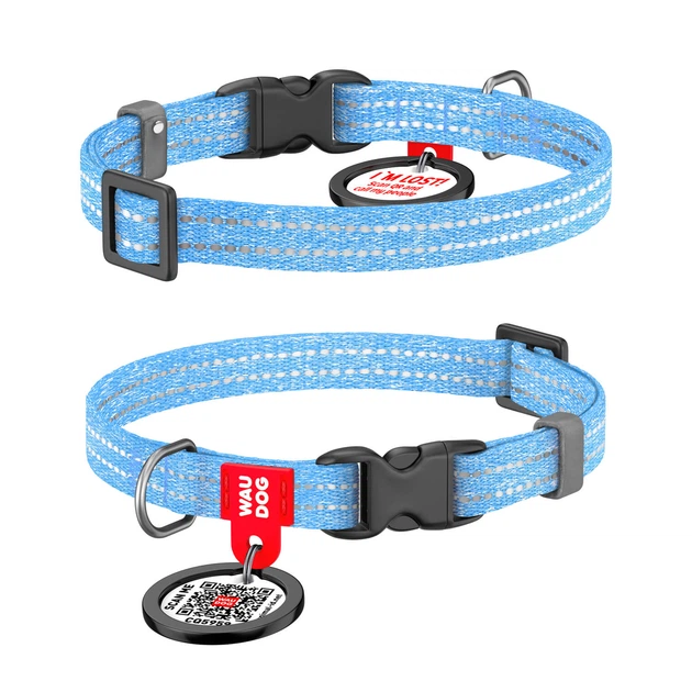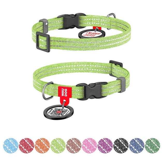 Нашийник для котів та дрібних порід собак WAUDOG Re-cotton з QR паспортом, відновлена бавовна, світловідбиваючий, пластикова