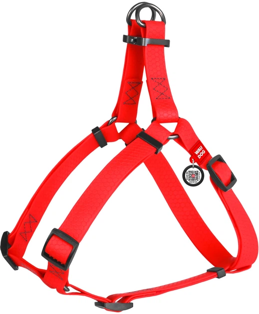 Шлея для собак водостійка WAUDOG Waterproof з QR-паспортом 30-39 см Червона (27633Collar)