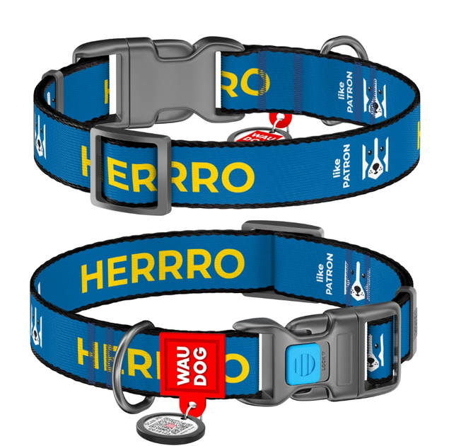 Нашийник для собак нейлоновий з QR-паспортом, малюнок "Патрон", розмір M (24-40 см), ширина 20 мм