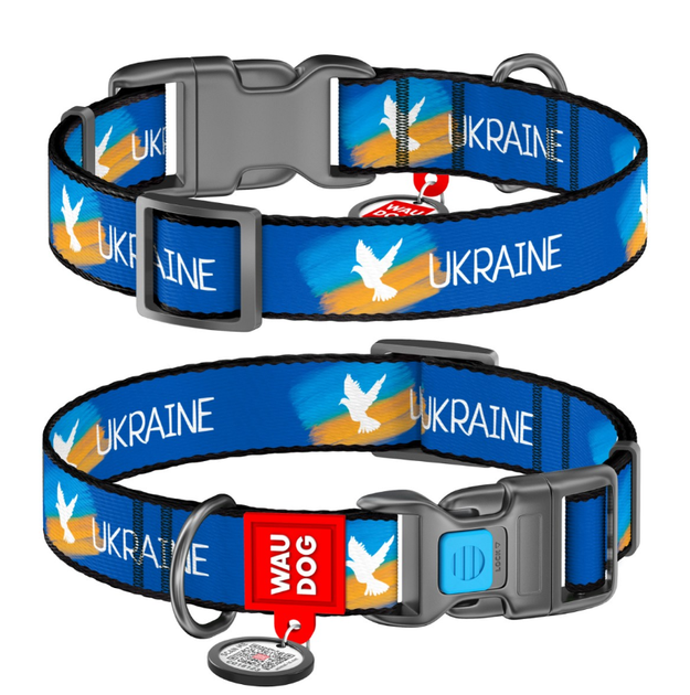 Нашийник для собак нейлоновий c QR паспортом, малюнок "Ukraine" , розмір M (24-40 см), ширина 20 мм