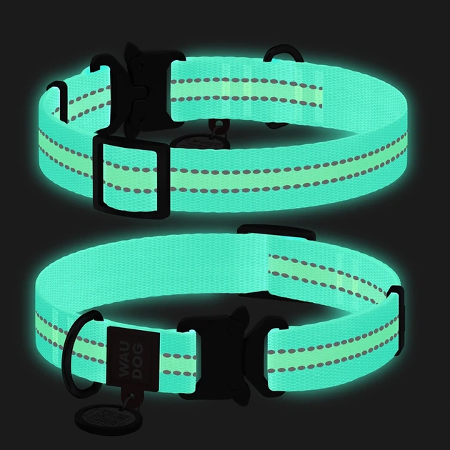 Нашийник для собак WAUDOG нейлоновий з QR паспортом світловідбивний з металевою пряжею для середніх і великих порід (591689)