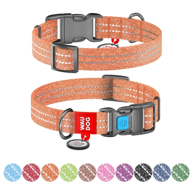 Нашийник для собак з відновленої бавовни WAUDOG Re-cotton з QR паспортом, світловідбивний, пластиковий фастекс, Ш 20 мм, Дл