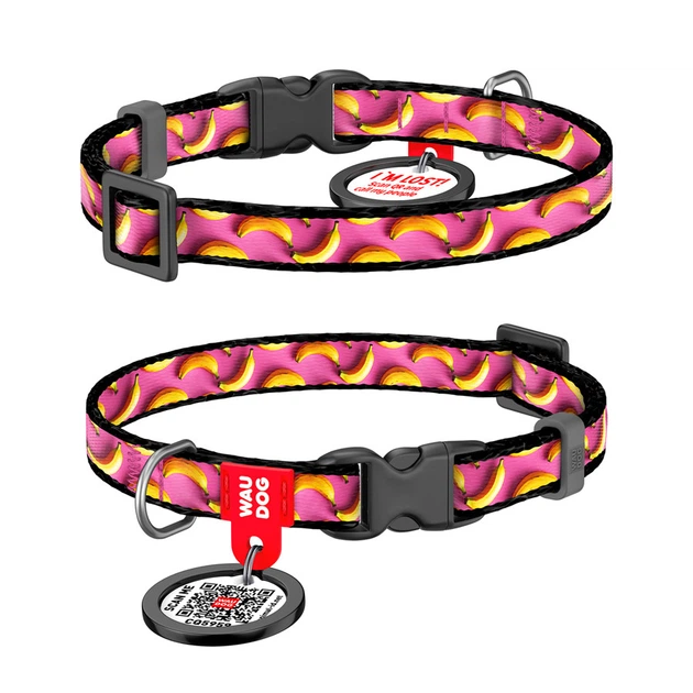 Нашийник для котів та дрібних порід собак нейлоновий WAUDOG Nylon з QR паспортом, малюнок "Банани на