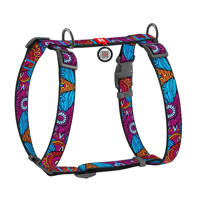Анатомічна H-подібна шлейка для собак з нейлону з QR-паспортом, фастекс, розмір L, різнокольорова