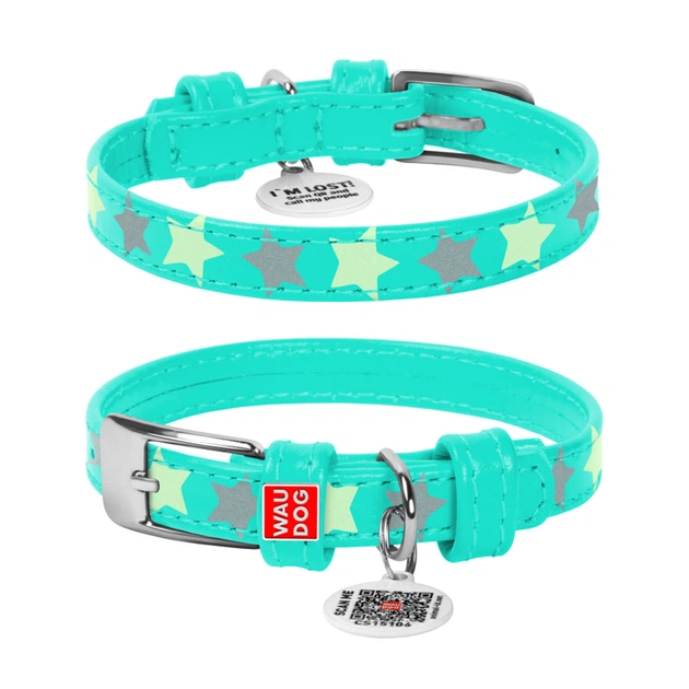 Нашийник для собак шкіряний WAUDOG Glamour з QR паспортом, візерунок "Зіронька", світиться/світловідбивний, Ш 15 мм, Дл 27-3