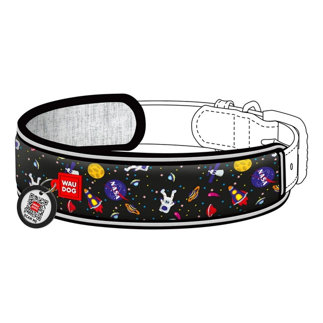 Ергономічна накладка на нашийник WAUDOG Nylon з QR паспортом, малюнок "NASA", розмір XS-S (2403-0147)