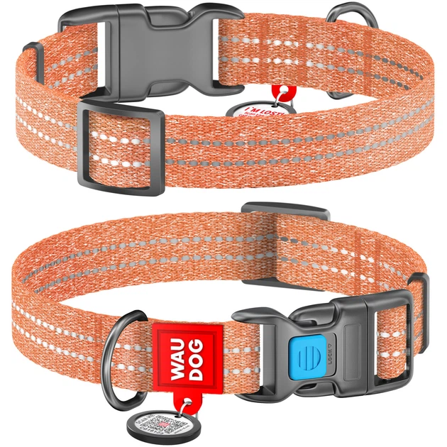 Нашийник для собак WAUDOG Re-cotton з QR паспортом, з відновленої бавовни, пластикова пряжка 25-35 см 15 мм Помаранчевий (02