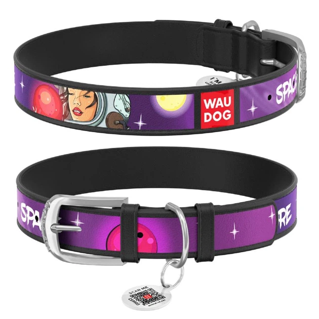 Ошейник для собак шкіряний WAUDOG Design з QR паспортом малюнок «Більше космосу» L