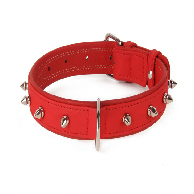 5322 Шкіряний ошийник для собак “Преміум” з шипами 35 мм, червоний верх/червоний низ