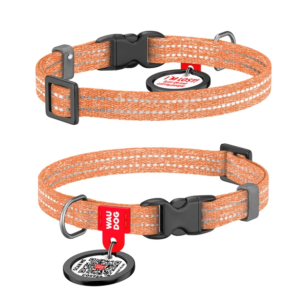 Нашийник для котів та дрібних порід собак з відновленої бавовни WAUDOG Re-cotton з QR паспортом, світловідбивний, пластикови