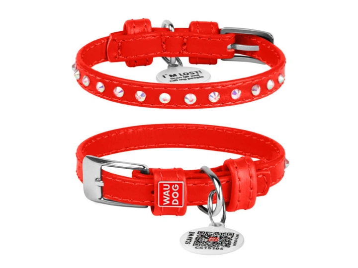Ошейник для тварин WAUDOG Glamour з QR-паспортом зі стразами М Ш 20 мм Д 30-39 см червоний (32783)