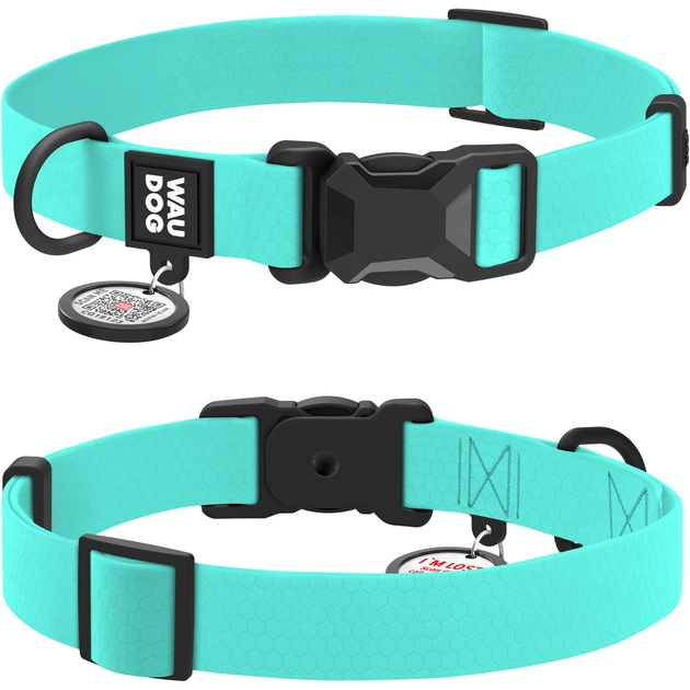 Нашийник для собак водостійкий WAUDOG Magnet з QR паспортом, магнітна пряжка-фастекс, тіффані, розмір M