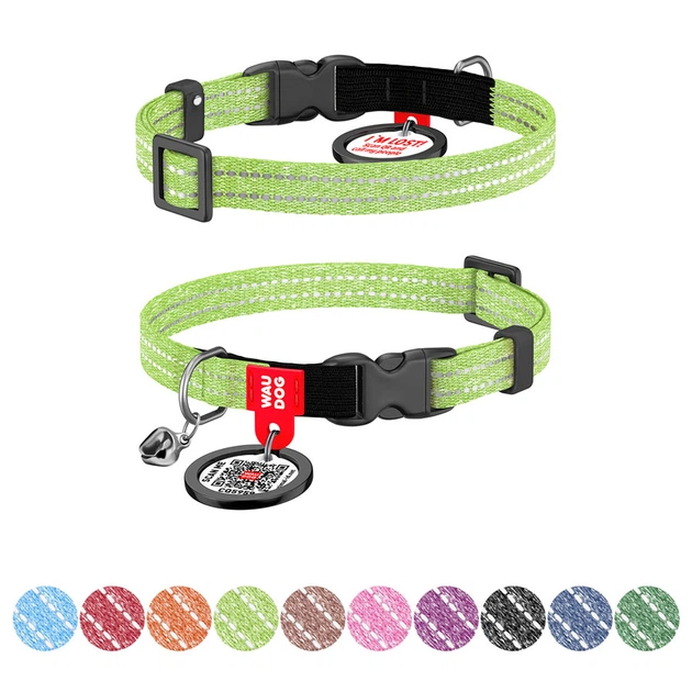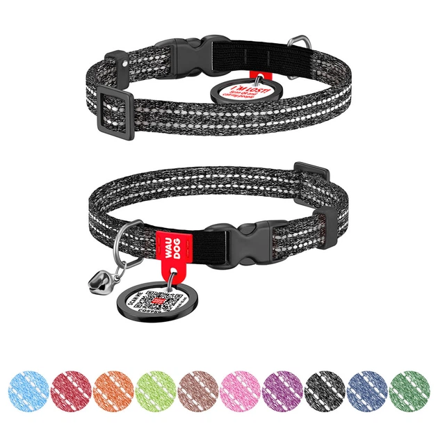 Нашийник для котів з відновленої бавовни WAUDOG Re-cotton з QR паспортом, світловідбивний, пластиковий фастекс, XS, Ш 10 мм,