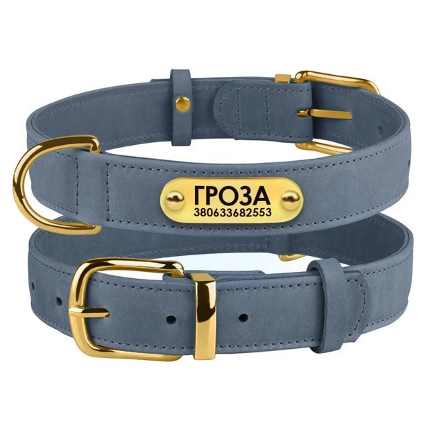 Нашийник для Собак Шкіряний BronzeDog Crazy Блакитний M 20 мм 30-39 см (004422)