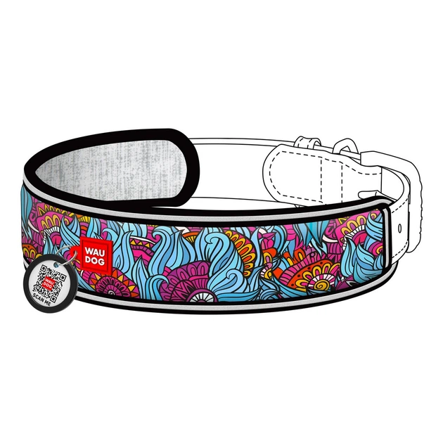 Ергономічна накладка на нашийник WAUDOG Nylon з QR паспортом, малюнок "Літо", розмір XS-S (2403-0062)