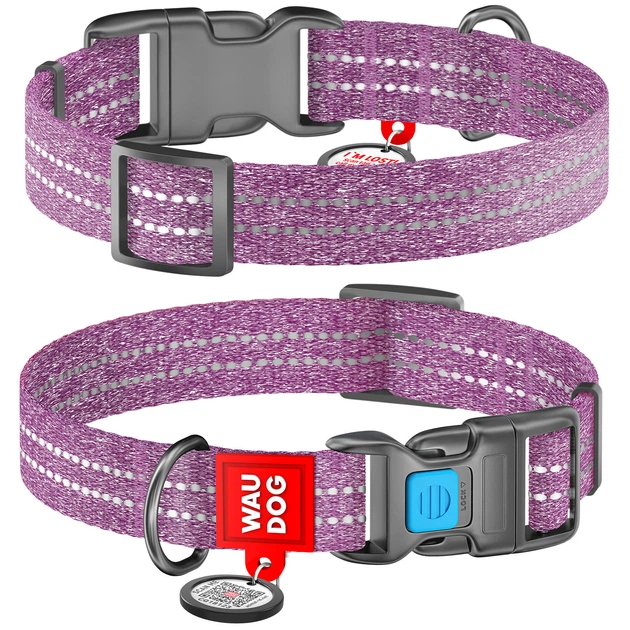 Нашийник для собак WAUDOG Re-cotton з QR паспортом, з відновленої бавовни, пластикова пряжка 25-35 см 15 мм Фіолетовий (0286