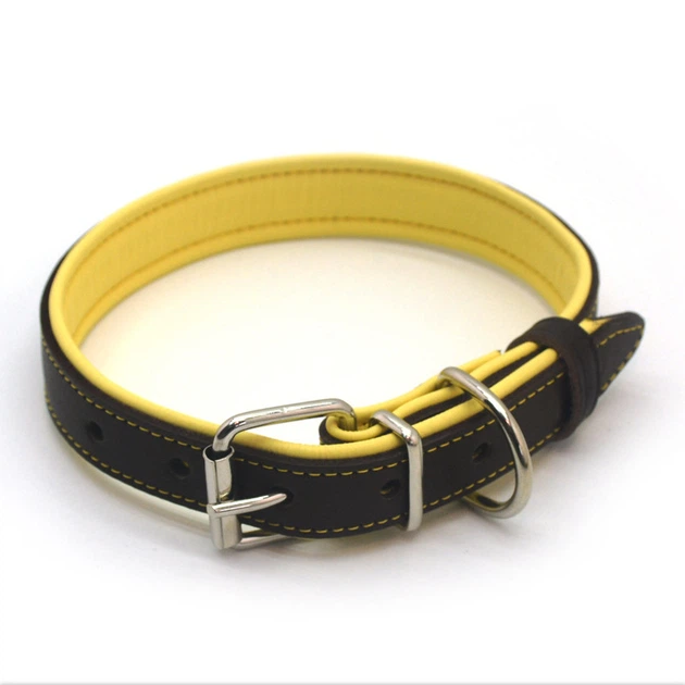 Нашийник для собак шкіряний подвійний ОД Soft коричневий + жовтий 3,0/43-53 см (E4E4C4ED2342)