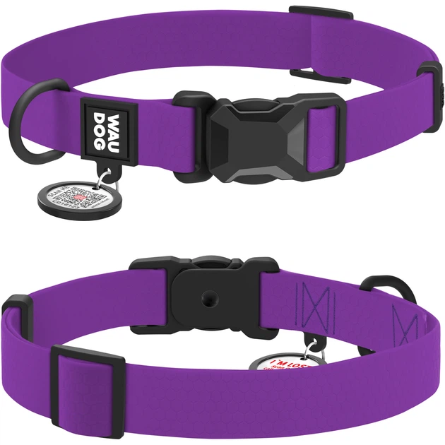 Нашийник для собак водостійкий WAUDOG Magnet з QR паспортом, магнітна пряжка-фастекс, фіолетовий, розмір L