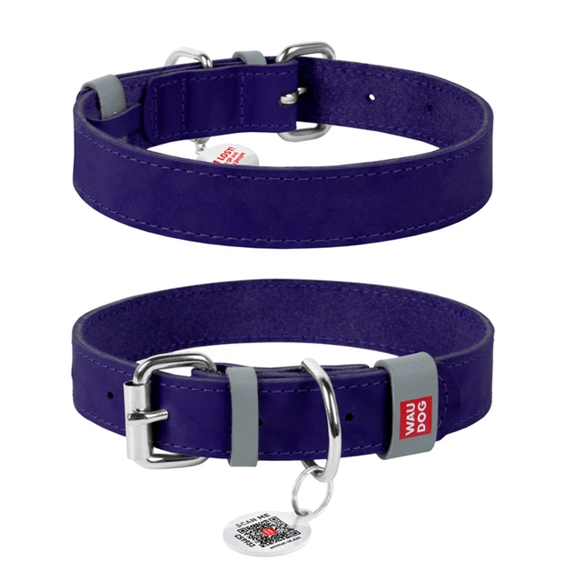 Нашийник для собак шкіряний WAUDOG Classic, Ш 35 мм, Дов 46-60 см фіолетовий