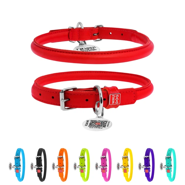 Ошейник для собак шкіряний WAUDOG Glamour з QR паспортом, круглий, Д 13 мм, Дов 53-63 см червоний