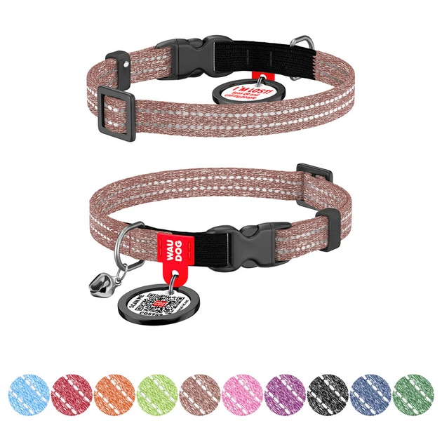 Нашийник для котів з відновленої бавовни WAUDOG Re-cotton з QR паспортом, світловідбивний, пластиковий фастекс, XS, Ш 10 мм,