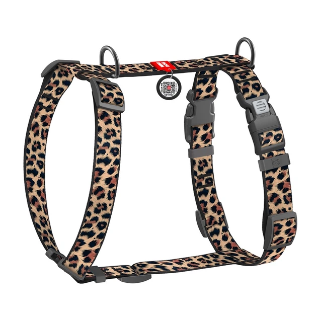 Шлей для собак анатомічний H-подібний WAUDOG Nylon з QR-паспортом, малюнок "Леопард", пластиковий фастекс, L, Ш 25 мм, A 51-
