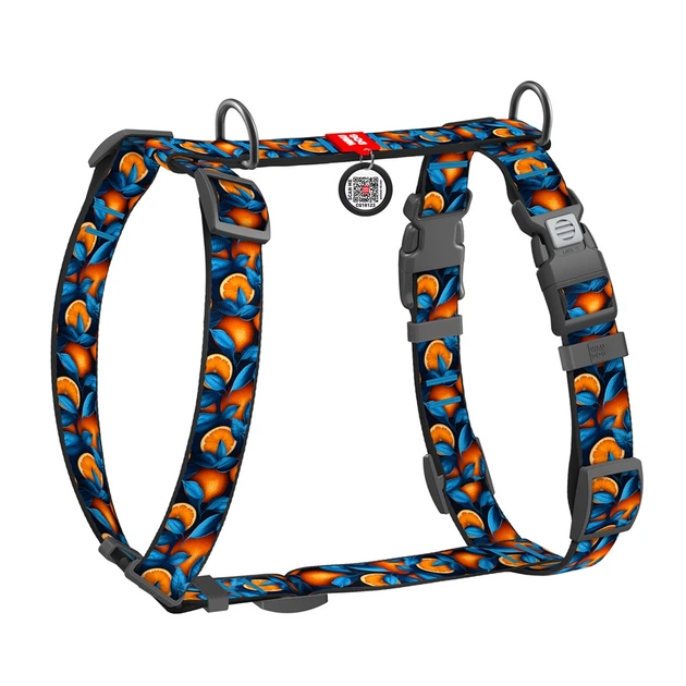 Шлей для собак анатомічний H-подібний WAUDOG Nylon з QR-паспортом, малюнок "Апельсині", пластиковий фастекс, L, Ш 25 мм, A 5
