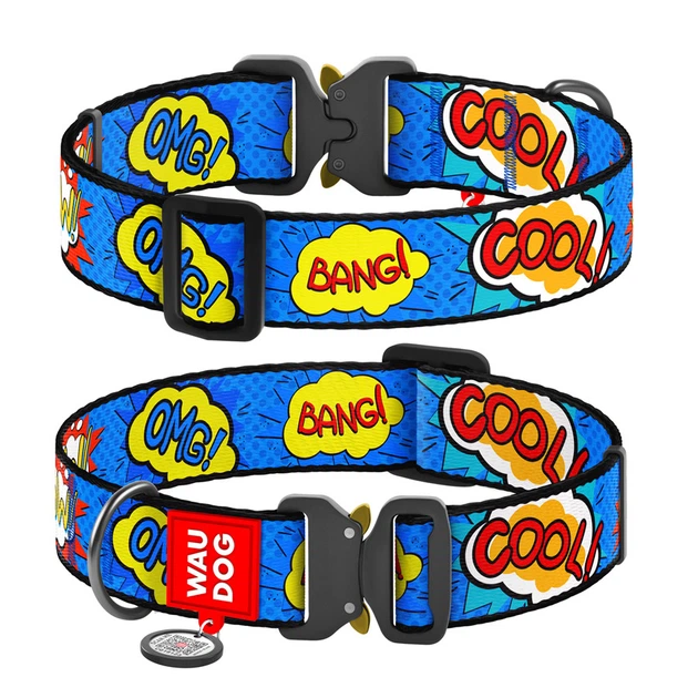 Нашийник для собак нейлоновий WAUDOG Nylon з QR паспортом, малюнок "ВАУ", металева пряжка-фастекс, XXL