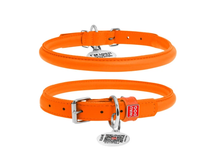 Нашийник для тварин WAUDOG Glamour з QR паспортом, круглий, XL помаранчевий (35314)