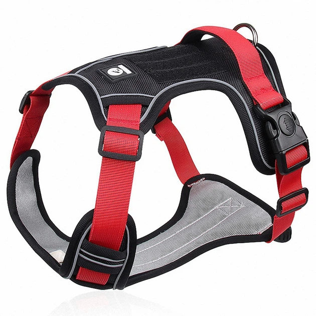 Шлея-жилет для собак Oxford 1680D Червоно-чорний (L) жилетка нашийник прогулянковий з рефлекторами та спинною ручкою