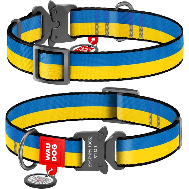 Нашийник для собак нейлоновий WAUDOG Nylon з QR паспортом, малюнок "Colors of freedom", металева пряжка-фастекс, 46-70 см 35