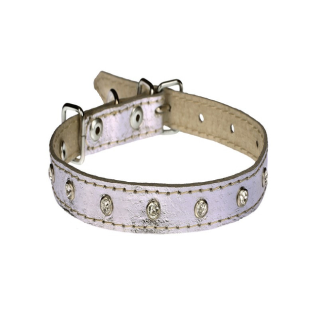 Нашийник Перламутр Вірний друг шкіряний подвійний прикрашений стразами срібний для вигулу собак 23-29 см (1244)