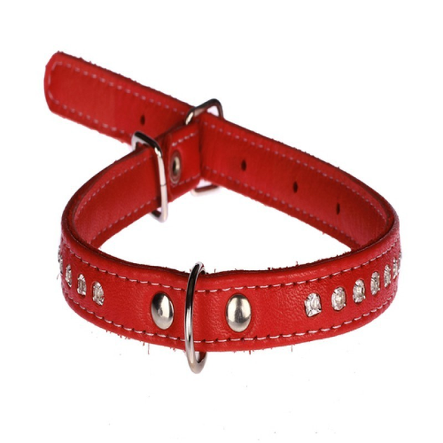 Нашийник Елегант Вірний друг шкіряний одинарний прикрашений стразами червоний для вигулу собак 8-24 см (1812)