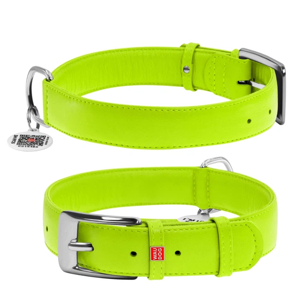 Нашийник для собак шкіряний WAUDOG Glamour з QR паспортом, без прикрас, L, Ш 25 мм, Дл 38-49 см салатовий