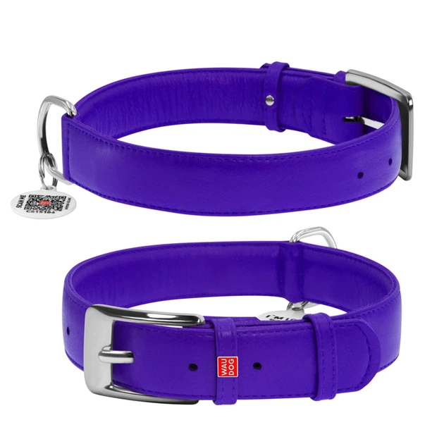 Нашийник для собак шкіряний WAUDOG Glamour з QR паспортом, без прикрас, L, Ш 25 мм, Дл 38-49 см фіолетовий
