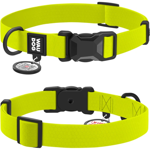 Нашийник для собак водостійкий WAUDOG Magnet з QR паспортом, магнітна пряжка-фастекс, лимонний, розмір XL