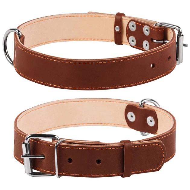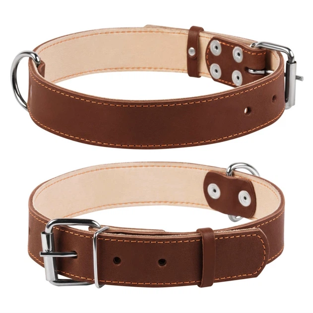 Нашийник для собак L Collar Подвійний, коричневий — шкіряний плоский, регульований; ширина 35 мм, довжина 48–63 см, металева