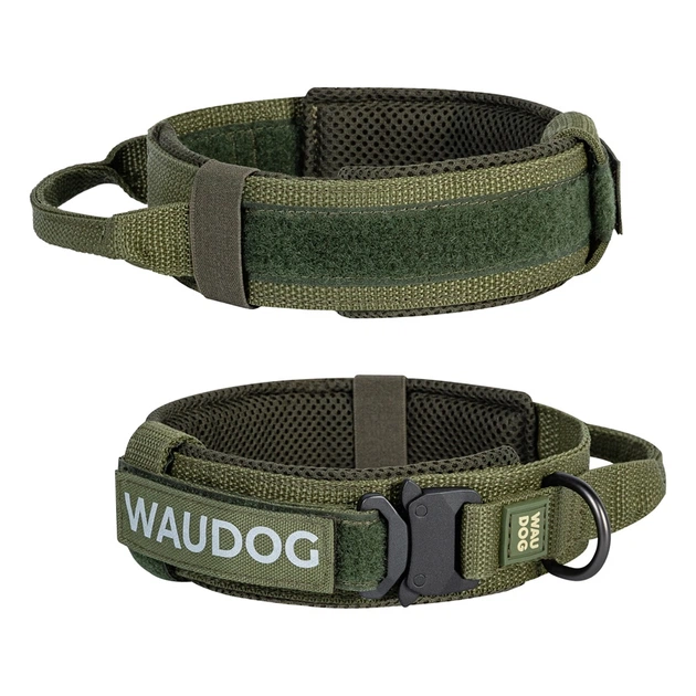 Нашийник з ручкою тактичний для собак WAUDOG PRO, розмір М, металевий фастекс, хакі (688731)